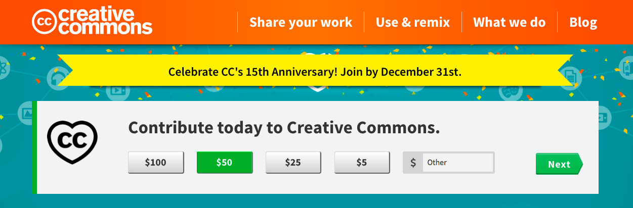 Interestingly, the Creative Commons site currently has both a header and a footer with calls for contribution.
